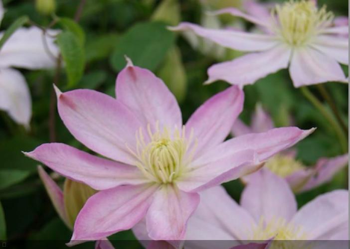 RetourNom commun : ClématiteOriginaire du Japon, dans les régions chaudes elle préfère les expositions Est ou mi-ombre avec ses grandes fleurs blanc rosé/ lilacé