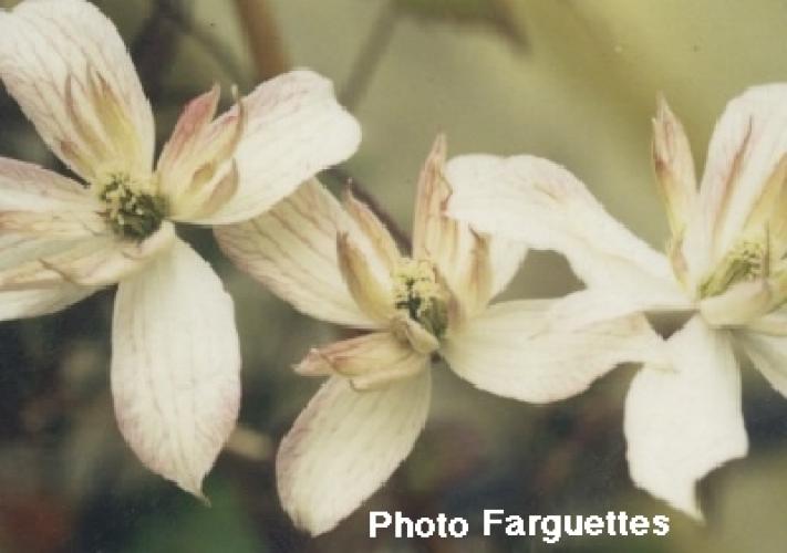Nom commun : Clematite Petite fleur, en étoile,crème rosé.Obtention Marjorie Free en 1980 elle fut commercialisée par J.Fisk en G.B.