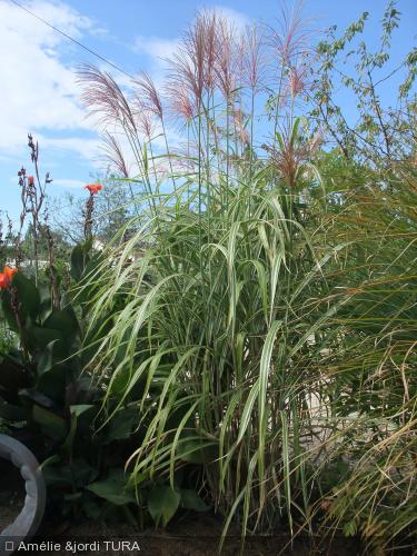 RetourNom commun : Roseau de Chine, Eulalie, Elephant GrassFeuillage très large. Vert foncé largement marginé de crème.